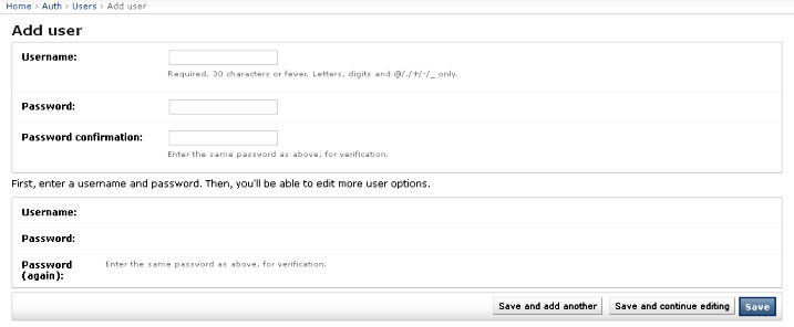 4. When you click on the “Add user” button, the following screen appears to allow you to enter the Username and Password.